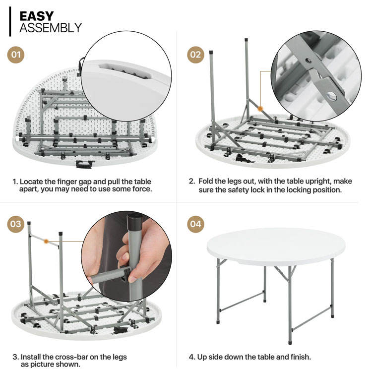 โต๊ะพลาสติกพับได้ทรงกลมแบบขายส่ง โต๊ะพับพกพาสำหรับใช้ในร่มและกลางแจ้ง ปิกนิก แคมป์ปิ้ง และงานอีเว้นท์