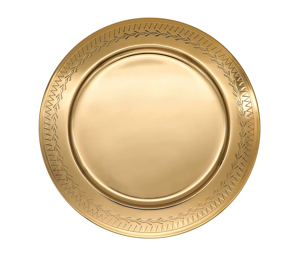 แท่นชาร์จทองเหลืองทรงกลมอุปกรณ์สำหรับงานแต่งงานเครื่องครัวและร้านอาหาร