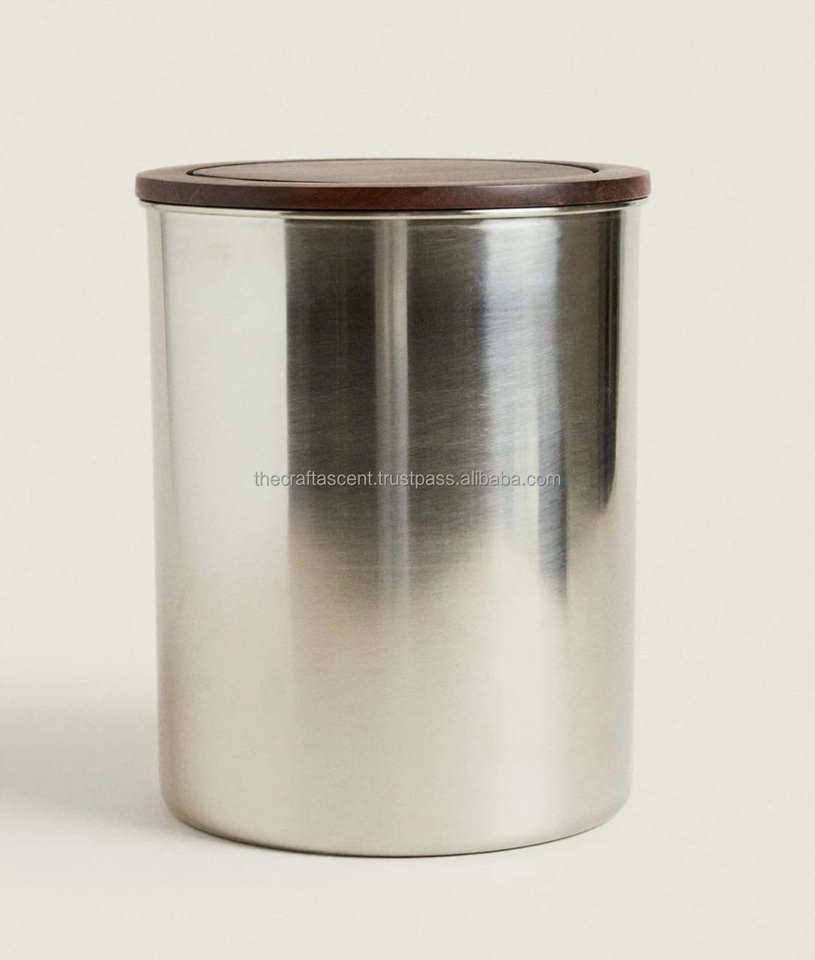 ขายส่งขวดเทียนสแตนเลส CRAFT ASCENT ดีไซน์พิเศษ ฝาไม้เคลือบนิกเกิลขัดเงา งานแฮนด์เมด สำหรับใส่เทียน