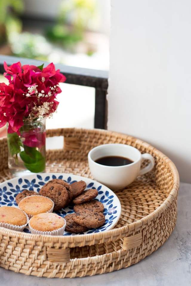 ถาดรองผลไม้หวายทำมือแบบดั้งเดิมถาดตกแต่งบ้านถาดเสิร์ฟหวายทำมือขนาดแตกต่างกัน