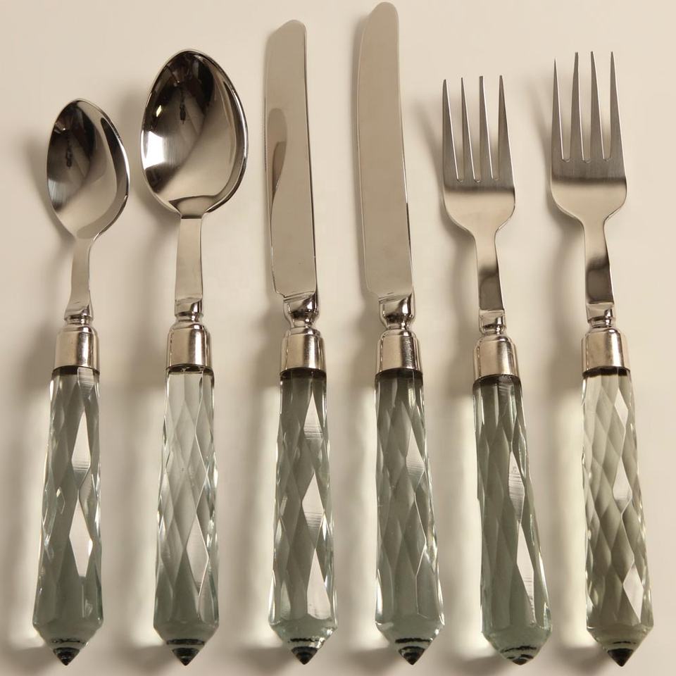 ชุดเครื่องใช้บนโต๊ะอาหารสำหรับงานแต่งงานทำจากสแตนเลสมีด้ามจับหนาชุบทองหรูหรา