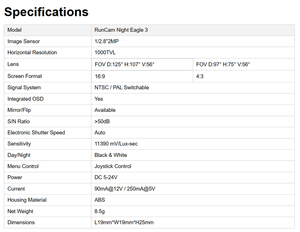 กล้องถ่ายภาพกลางคืน RunCam Night Eagle 3 Micro FPV ความละเอียด 1500TVL รองรับ OSD สำหรับกล้องมองกลางคืน อุปกรณ์เสริมโดรน FPV ขายส่ง