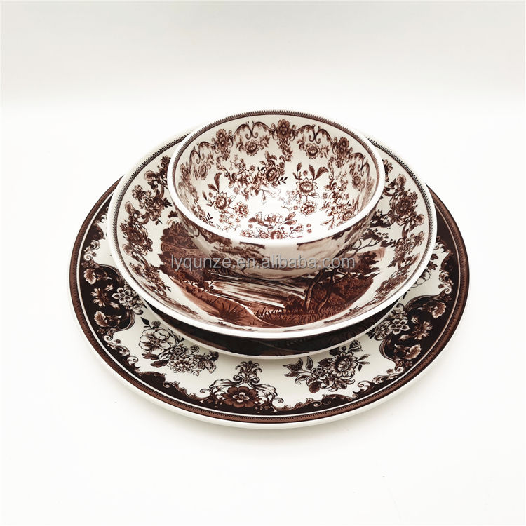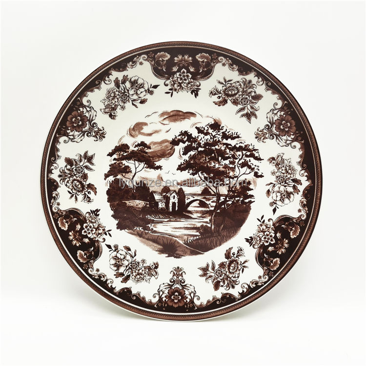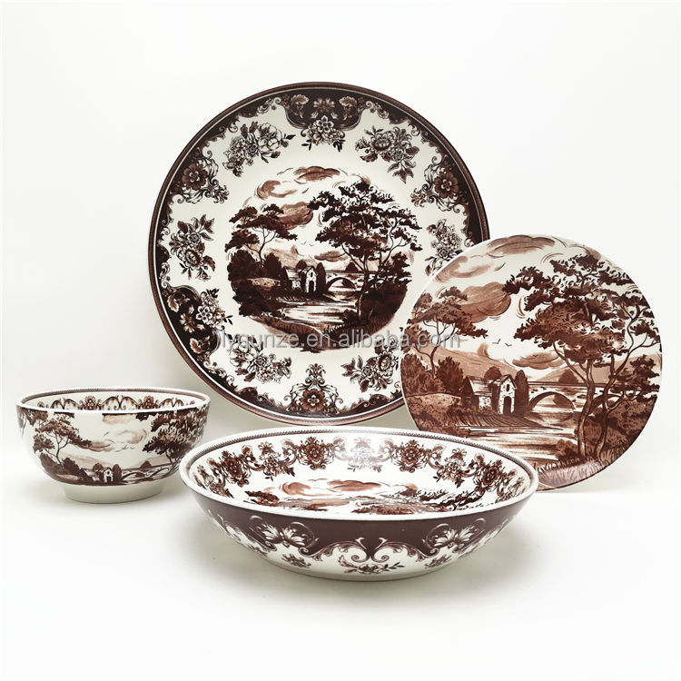 ชุดรับประทานอาหารเย็นเตาอบไมโครเวฟเครื่องเคลือบดินเผาสีขาวภาพวาดภูมิทัศน์ชนบท