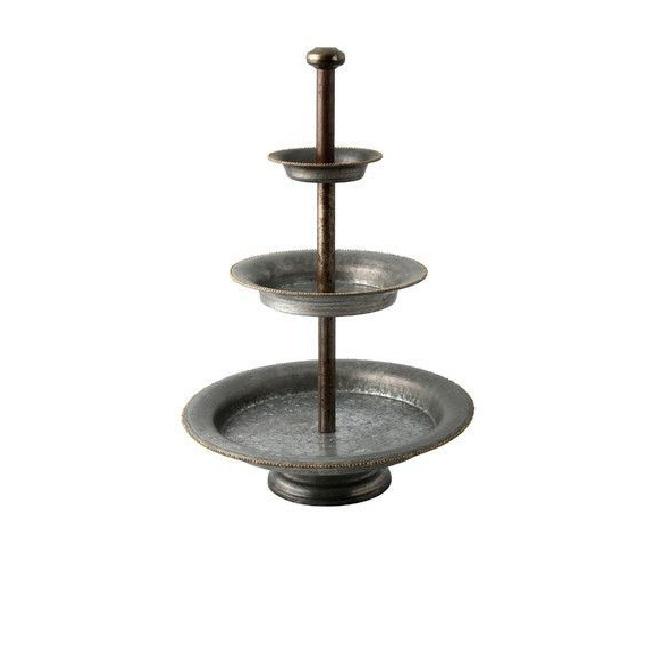 ชั้นวางของแบบเรียบง่าย 3 ชั้น ชุบสังกะสี สำหรับเสิร์ฟอาหาร สไตล์บ้านไร่ พร้อมหูจับ ถาดเหล็กชุบสังกะสีทรงกลม สำหรับโชว์ขนมหวาน