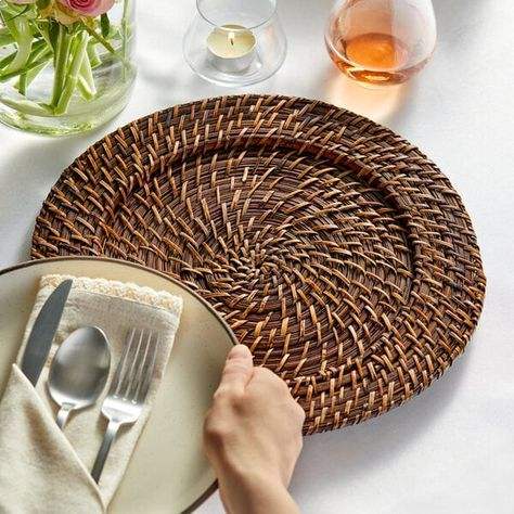 แผ่นรองหวายแบบชนบทการตั้งค่าโต๊ะอย่างสร้างสรรค์สำหรับเสื่อและแผ่นรอง