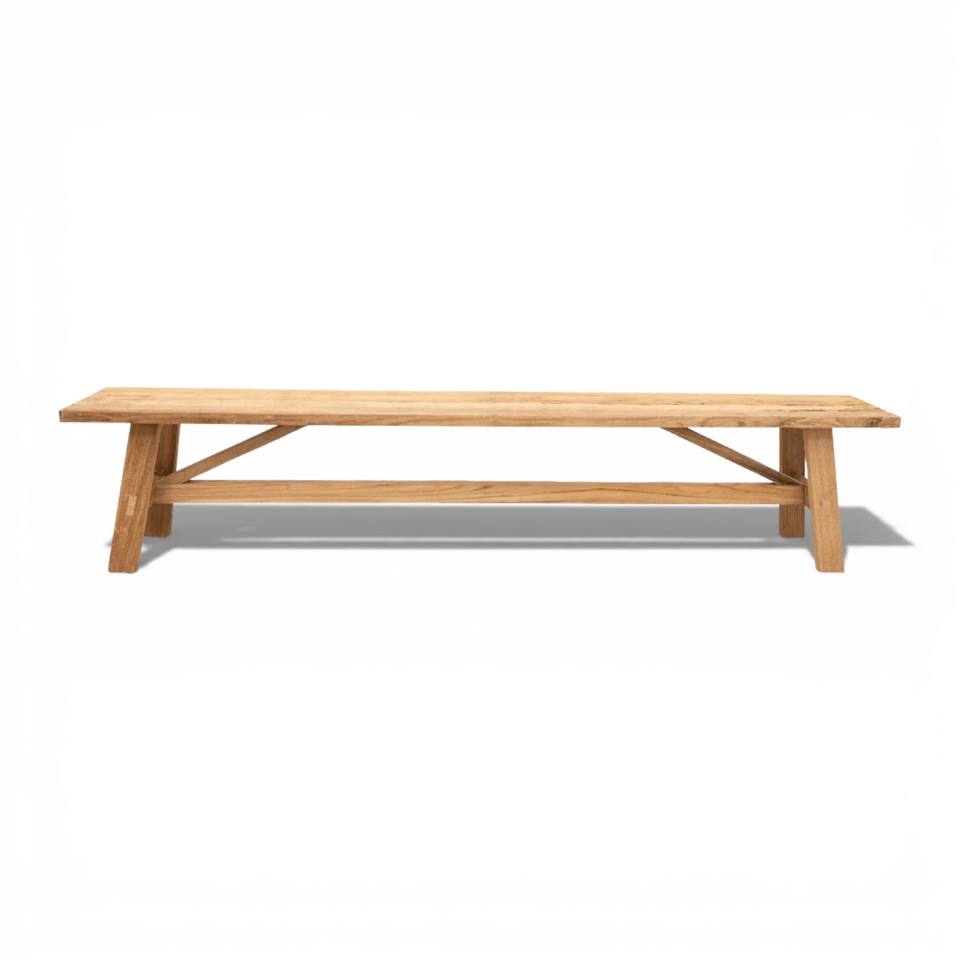 ม้านั่งไม้เนื้อแข็งแบบเรียบง่ายสำหรับกลางแจ้ง ทนทานต่อสภาพอากาศ ทำจากไม้สักรีไซเคิล ป้องกันการกัดกร่อน เหมาะสำหรับสวนและสวนสาธารณะ