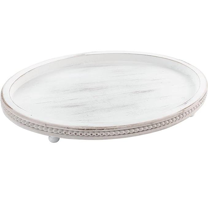 จานรองไม้สีขาวสไตล์ชนบทแบบขายส่ง จานรองทรงกลมแบบดิสเทรสสำหรับตกแต่งโต๊ะงานแต่งงานและงานปาร์ตี้