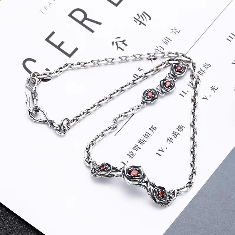 สร้อยคอจี้เงินแท้ S925 สไตล์วินเทจแฟชั่นสำหรับผู้หญิง ดีไซน์ดอกกุหลาบประดับเพชรซิคอน เหมาะสำหรับโอกาสพิเศษในวันครบรอบ
