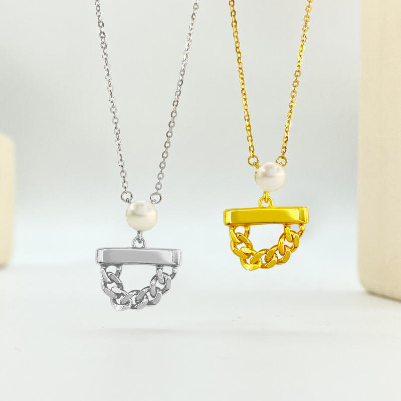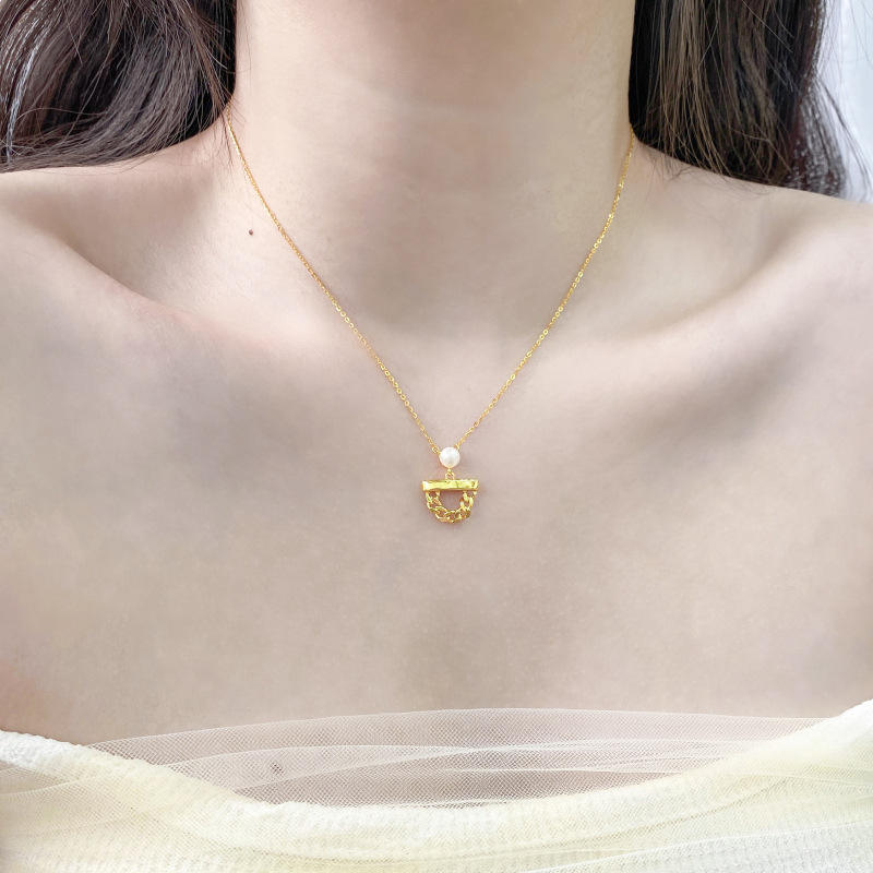ขายส่ง S925เงินสเตอร์ลิงสร้อยคอจี้รูปตัว D ไข่มุกน้ำจืดสีทองเครื่องประดับแฟชั่นแบบเรียบง่าย