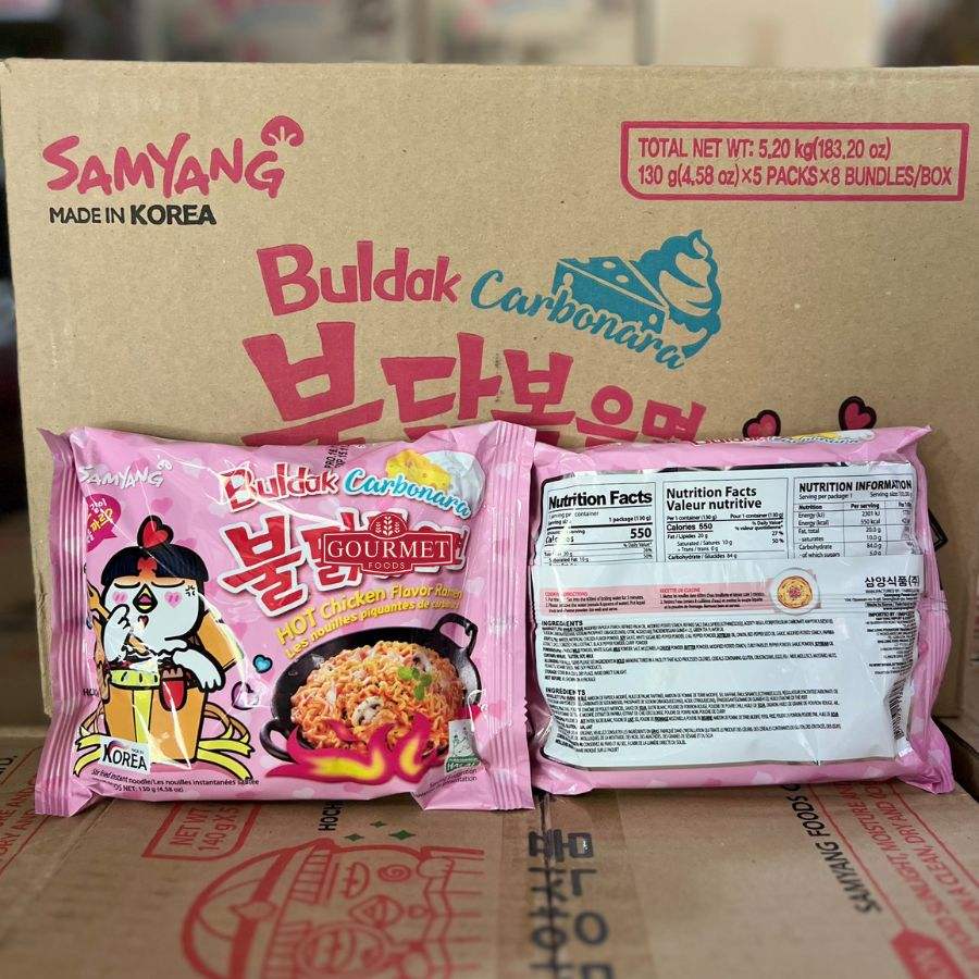 ชื่อผลิตภัณฑ์:บะหมี่ราเม็ง samyangg รสไก่เผ็ดกับซอสคาโบรานา