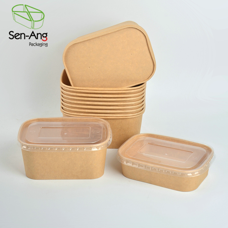 Senang ภาชนะใส่อาหารกระดาษคราฟท์ทรงสี่เหลี่ยมแบบใช้แล้วทิ้งถ้วยใส่อาหารทรงสี่เหลี่ยมเคลือบด้วย PE สามารถกำหนดได้เอง5000ชิ้น