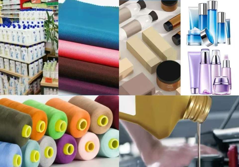 ตัวแทนช่วยเคลือบ, สารเคมีอิเล็กทรอนิคส์, หนังตัวแทนเสริม, สารเคมีกระดาษ, สารปิโตรเลียม, ตัวแทนช่วยพลาสติก, ตัวแทนยางเสริม, ลดแรงตึงผิว, ตัวแทนเสริมสิ่งทอ, สารเคมีบำบัดน้ำ