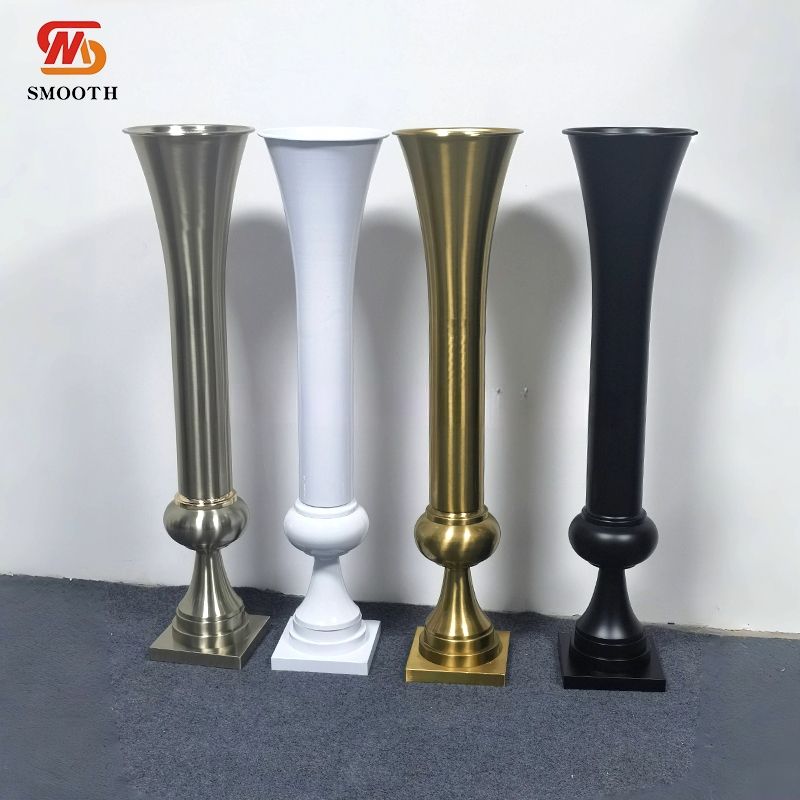 แจกันดอกไม้โลหะหรูหราขายส่ง สีทอง เงิน ขาว ดำ รูปทรงแจกัน ตกแต่งโต๊ะงานแต่งงาน สวยงามสง่างาม