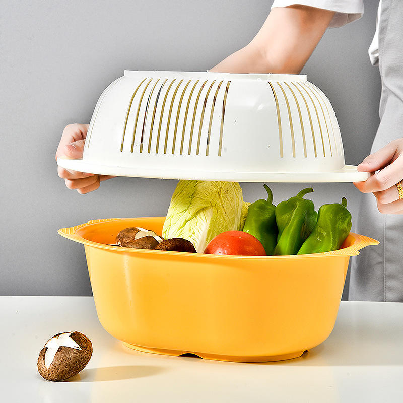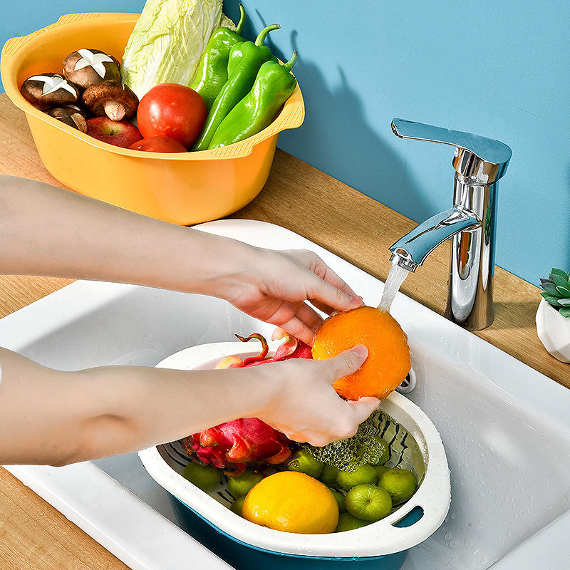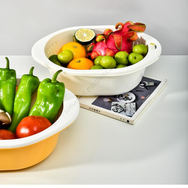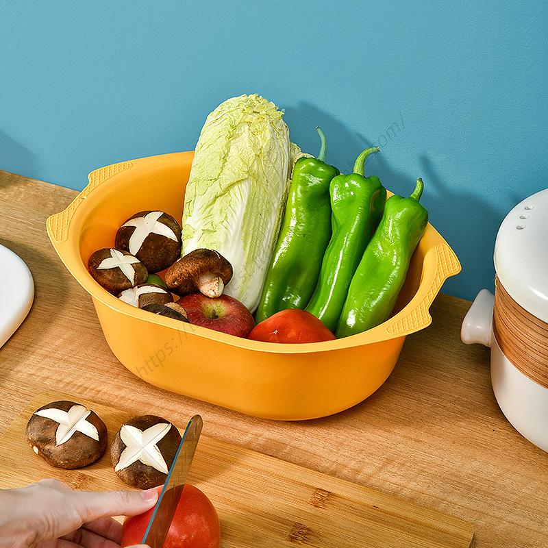 ตะกร้าเก็บผักในครัวขนาดใหญ่ SQ21 แบบสองชั้น สำหรับล้างผลไม้ สไตล์นอร์ดิก