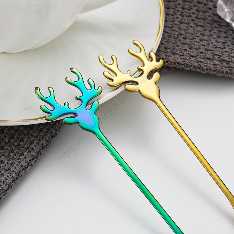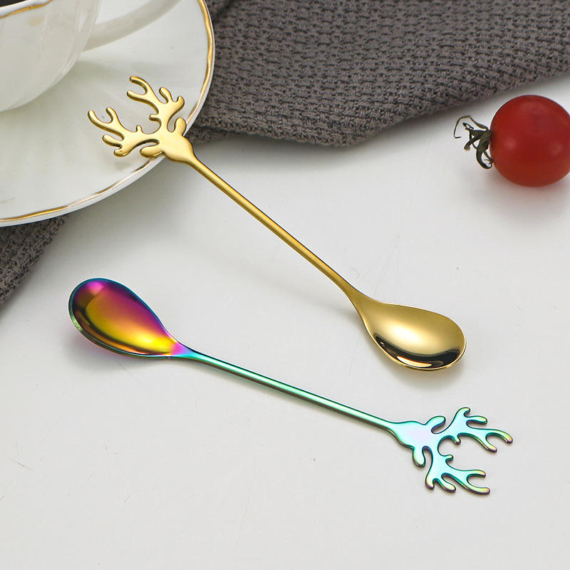ช้อนสแตนเลสรูปกวางคริสต์มาส SYH1222 สำหรับขายส่ง ใช้ตักของหวาน โยเกิร์ต และคนกาแฟ ชา