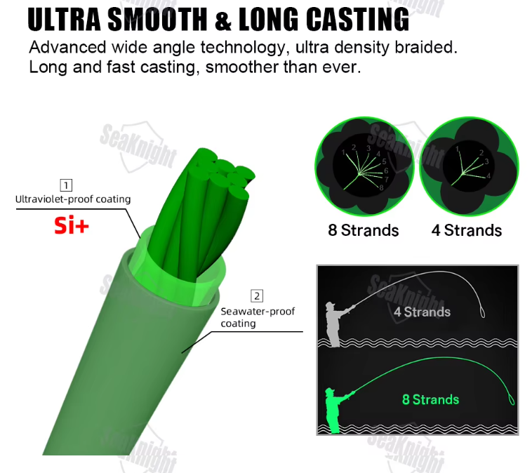 สายเบ็ดตกปลาถัก SeaKnight 500M MANSTER W8 แบบหลายเส้นใย 8 เส้น ยี่ห้อ Saltwater ขายส่ง