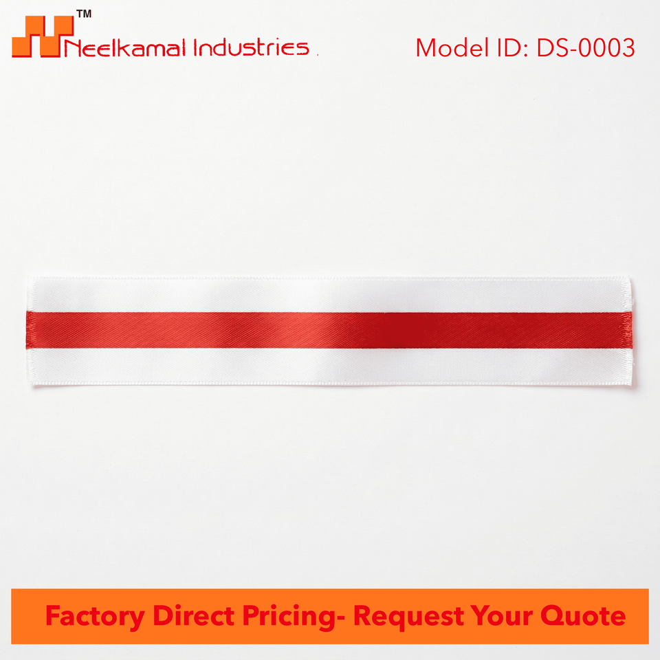 ริบบิ้นผ้าซาตินสีขาวลายแดงตรงกลางขนาด 25 มม. สำหรับตกแต่งบรรจุภัณฑ์ งานปาร์ตี้ ตกแต่งดอกไม้ และงาน DIY