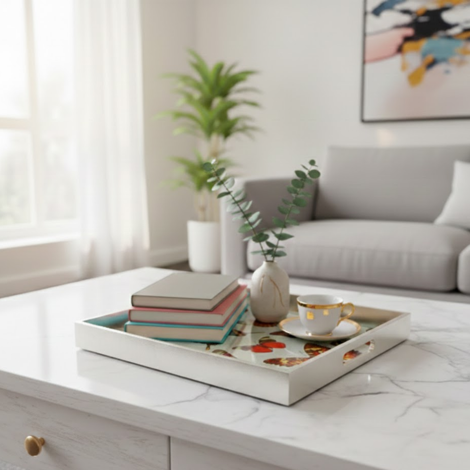 ถาดเคลือบเงาขอบหยักสำหรับขายส่ง ถาดตกแต่งบูติกสำหรับโต๊ะน้ำชา กาแฟ ของตกแต่งบ้านสุดหรู