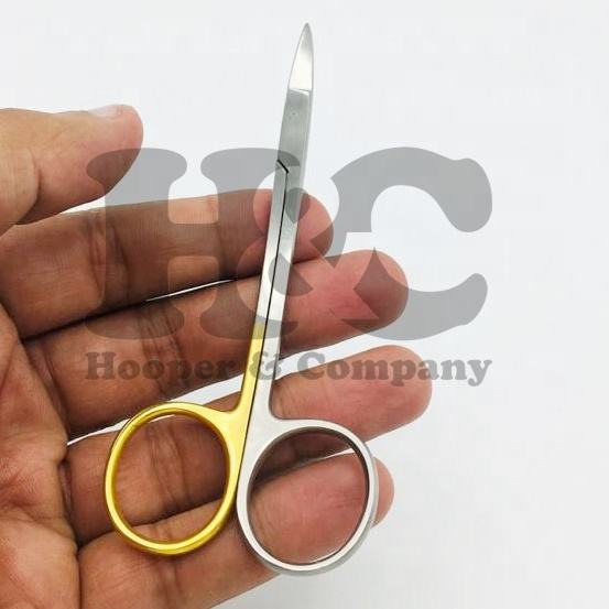 กรรไกรผ่าตัดสแตนเลสคุณภาพสูง ทนทาน ด้ามจับเหล็กสีทอง สำหรับคนถนัดขวา แบบตรง รับสกรีนโลโก้