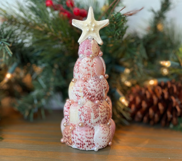ชุดต้นคริสต์มาสเปลือกหอยชุดตกแต่งชายหาดวันหยุดเปลือกหอยต้นคริสต์มาสพร้อมท็อปเปอร์ปลาดาว