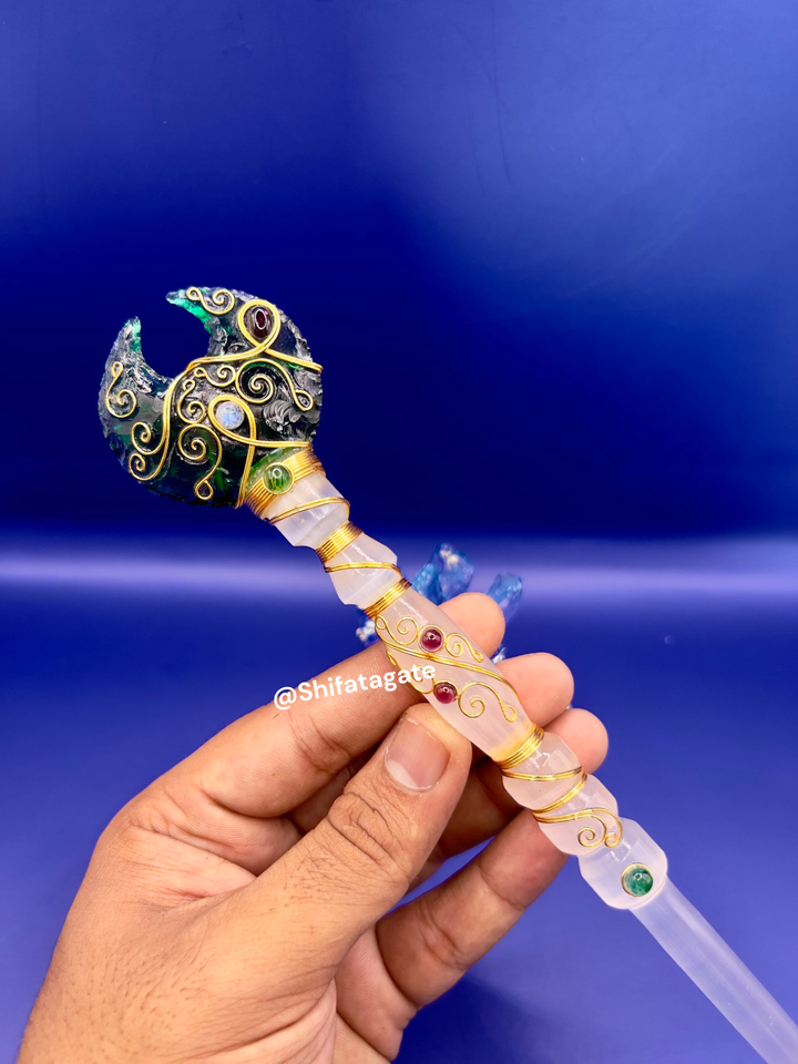 ชื่อผลิตภัณฑ์:ไม้กายสิทธิ์คริสตัลรูปดวงจันทร์สีเขียวแบบออบซิเดียน