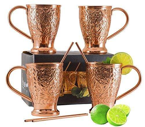 ชุดถ้วยเซรามิกเคลือบเงาสูงสี่ชั้นดีไซน์แบบขึ้นรูปด้วยค้อนแก้วน้ำทองแดงแวววาวสูงแบบกำหนดเองสำหรับร้านอาหารที่ทำขึ้นเอง