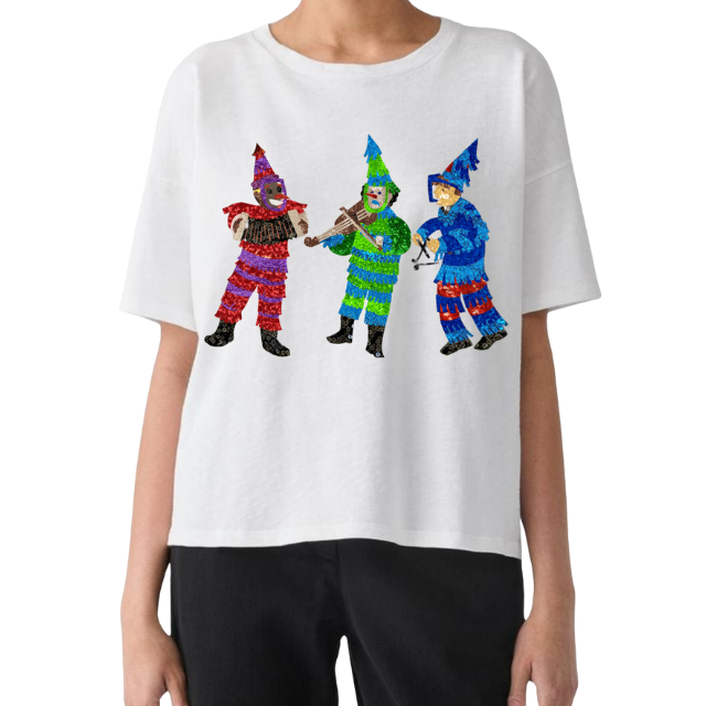 เสื้อยืดผู้หญิงและเด็กผู้หญิงใส่ทำงานด้วยเลื่อมชุดรูปแบบมาร์ดิกราส์สวมใส่สบาย