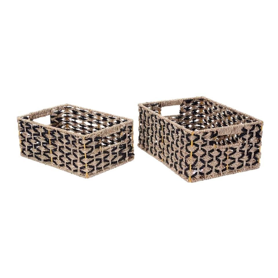 Handwoven Jute and Wire Storage Baskets Set of 2 with Handles for Home Organizing Stylish Eco Friendly Durable Design