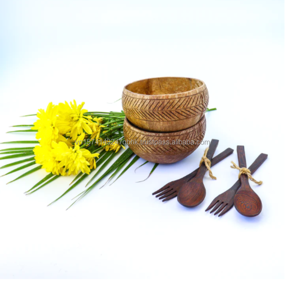 ชุดชามกะลามะพร้าวทำมือผลิตภัณฑ์เคลือบเงาธรรมชาติเป็นมิตรกับสิ่งแวดล้อมผลิตจากเวียดนาม