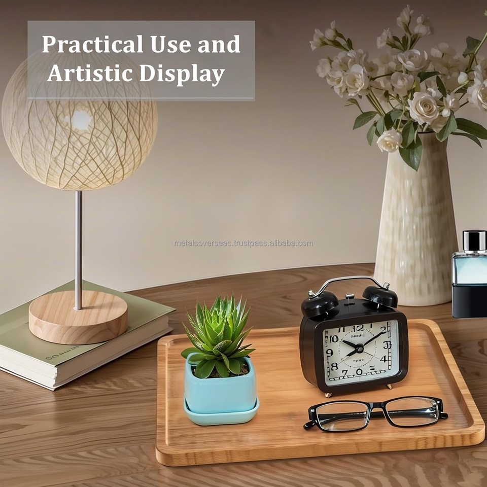 จานเสิร์ฟไม้อะคาเซียสำหรับอาหารออตโตมันชุดถาดไม้อะคาเซียตกแต่งพร้อมที่จับ