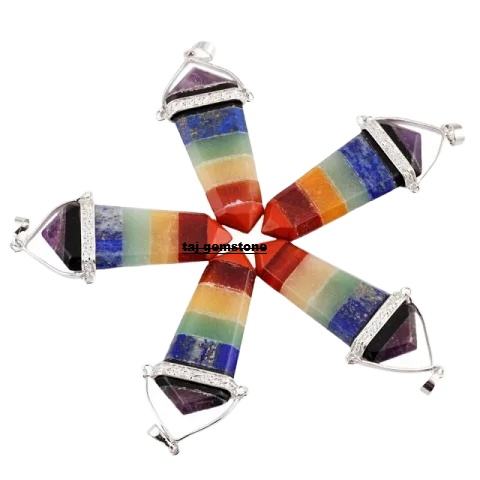 สร้อยคอจี้คริสตัลจักระเจ็ดชิ้นแกะสลักหินอาเกตธรรมชาติควอตซ์พลอยรักษาสร้อยคอทรงดินสอ