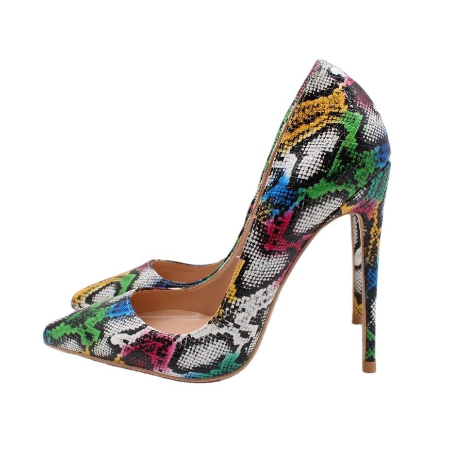 Wholesale Sexy Woman Shoes Pointed Toe High Heels Colourful Snake Print Stilettos 12 cm 10 cm 8 cm Wedding Shoes Girls