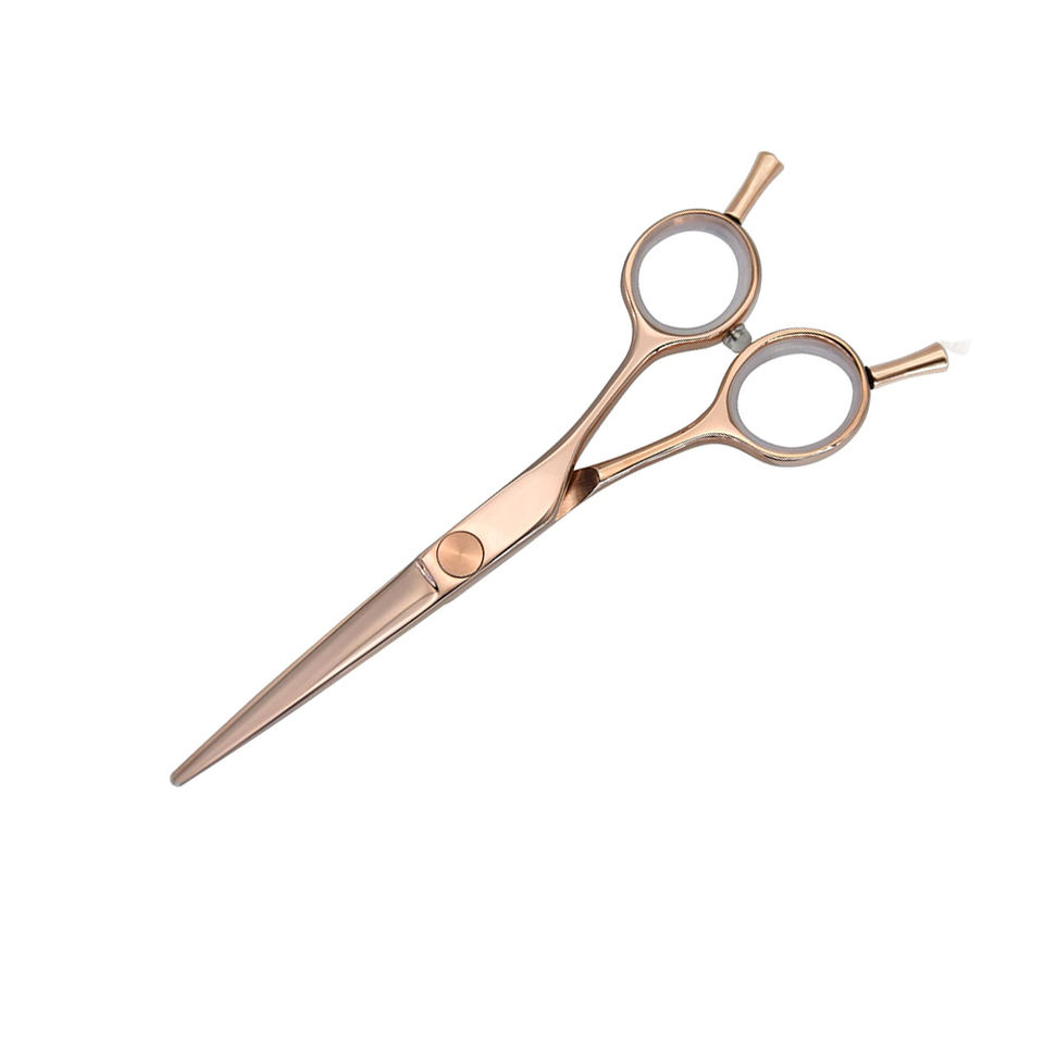 กรรไกรตัดผมสแตนเลส6.5นิ้วพร้อมที่พักสองนิ้วกรรไกรตัดผมใบมีดคมสีโรสโกลด์