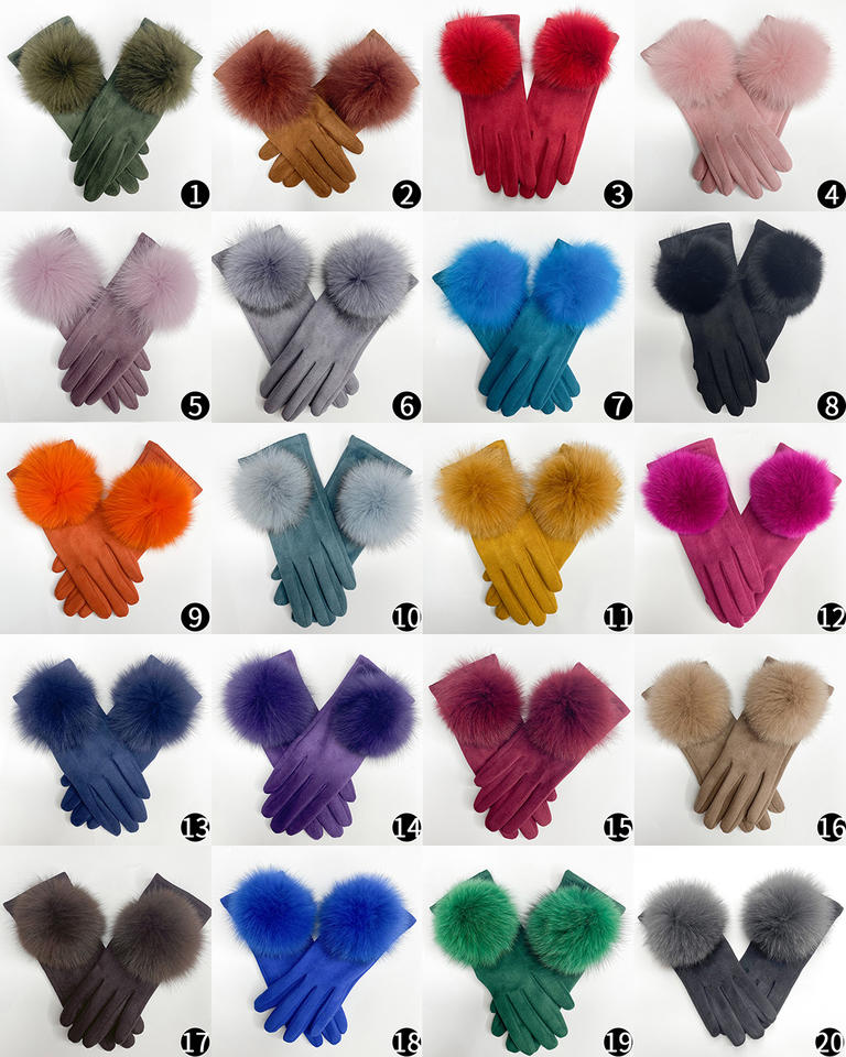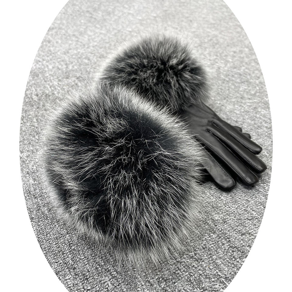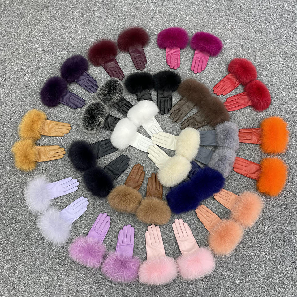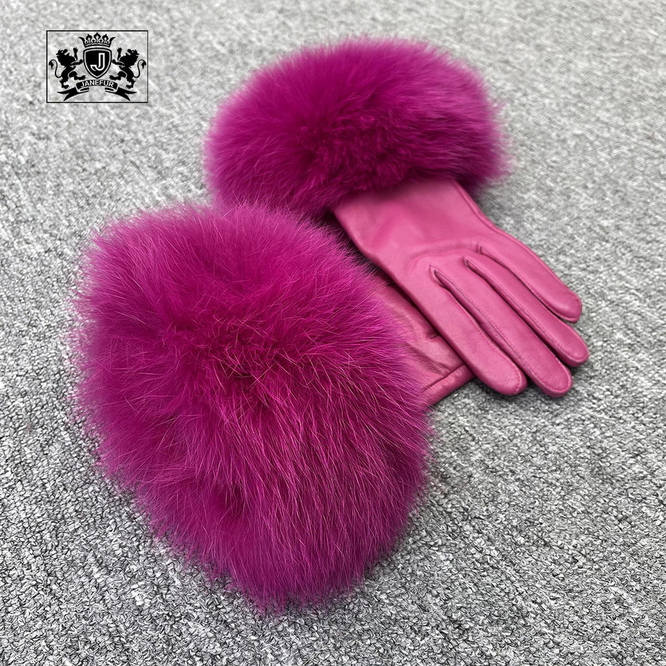 ถุงมือหนังแกะสำหรับผู้หญิง,ถุงมือหนังสำหรับฤดูหนาวขอบขนสุนัขจิ้งจอกหน้าจอสัมผัสแฟชั่น