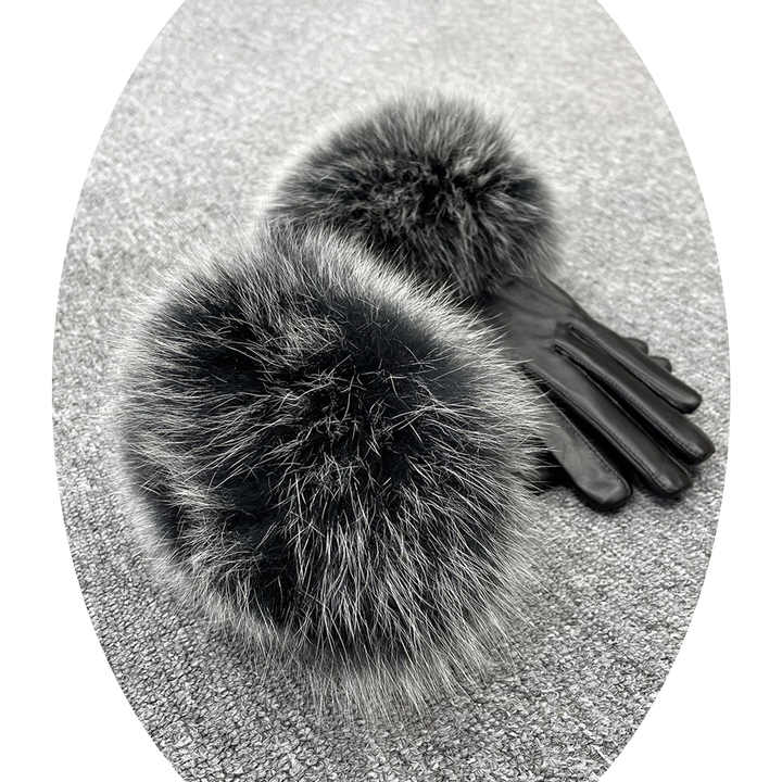 Wholesale Sheepskin Fashion Touch Screen Women fox Fur Trim Winter Leather Gloves