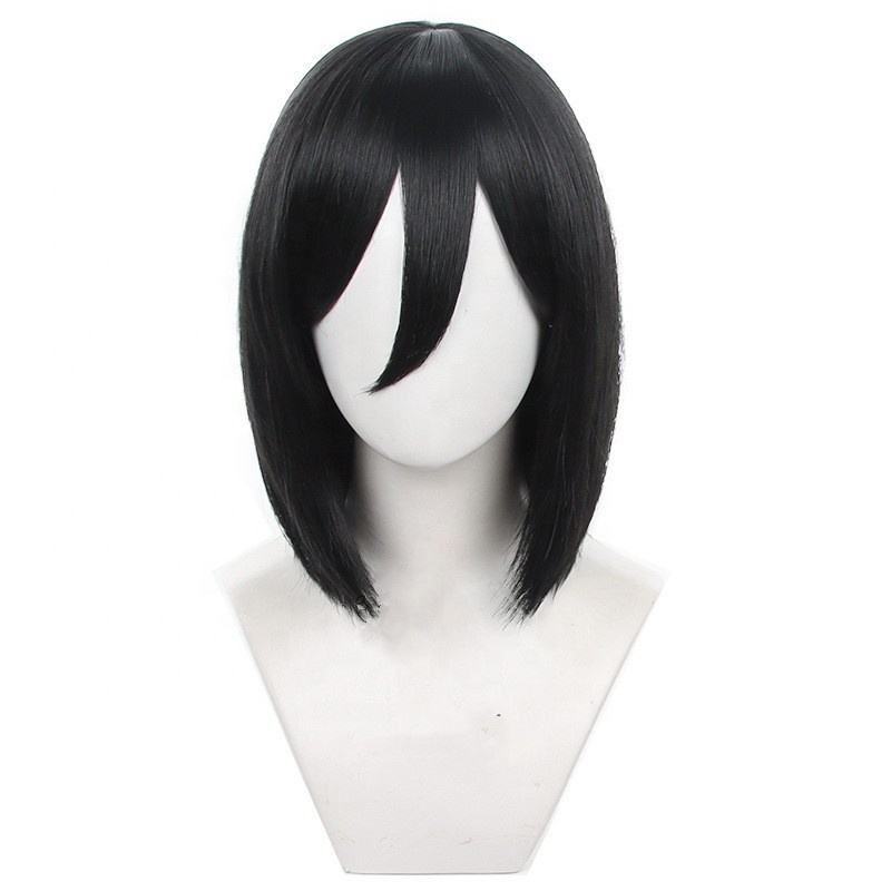 Shingeki NO kyojin วิกคอสเพลย์สั้น35ซม. สีดำสังเคราะห์อนิเมะฮาโลวีนปาร์ตี้ Mikasa Ackerman