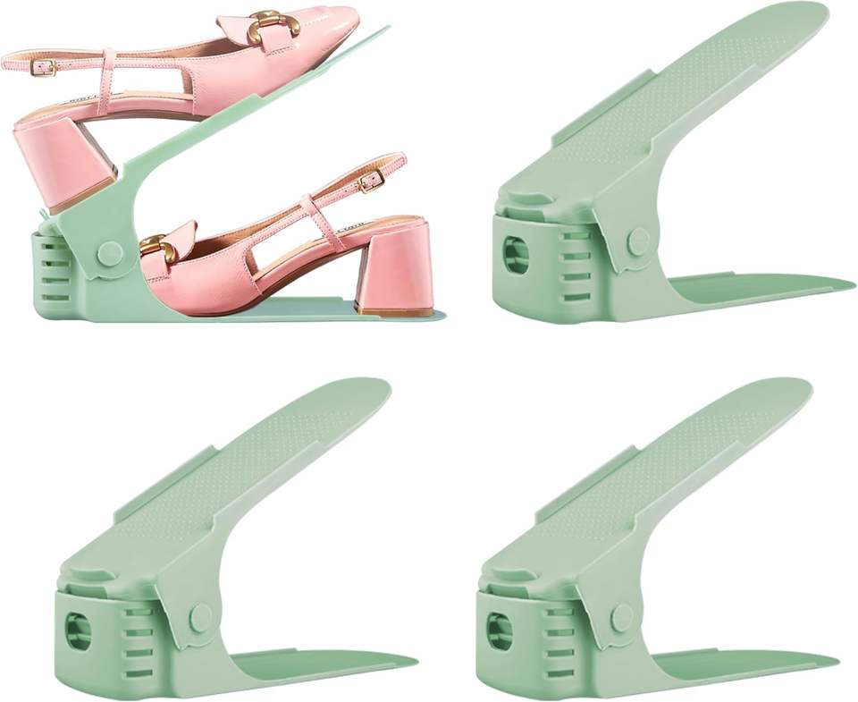 ชั้นวางรองเท้าแบบสองชั้นสำหรับจัดระเบียบตู้เสื้อผ้า ปรับระดับได้ ช่วยประหยัดพื้นที่