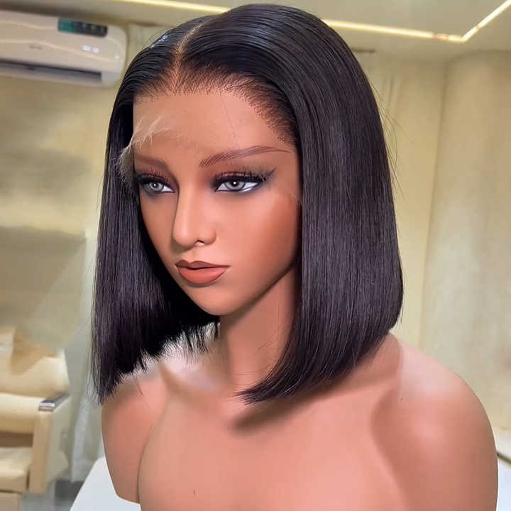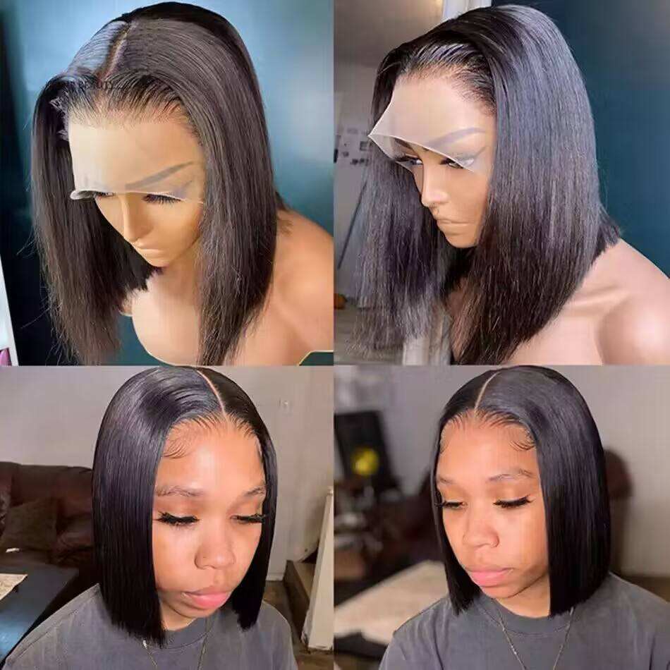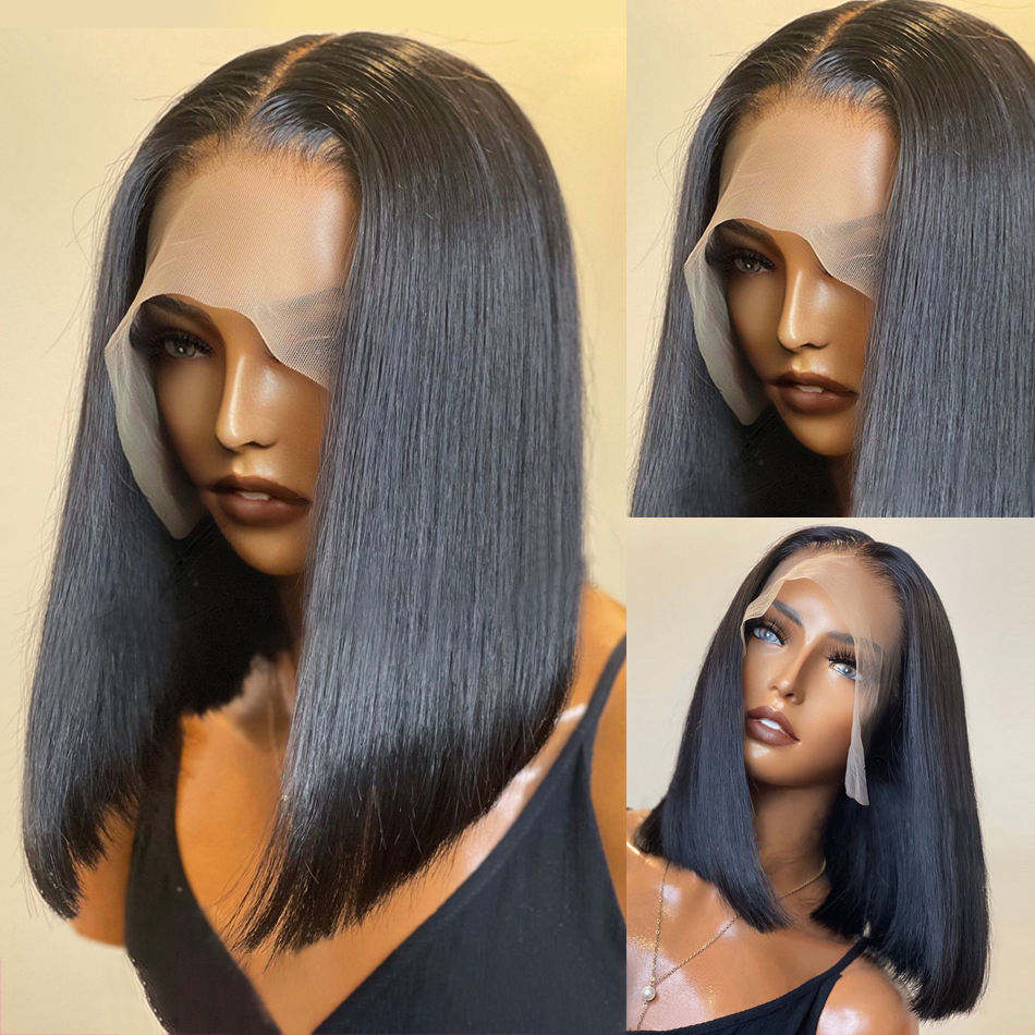 วิกผมสั้นบ็อบลูกไม้ด้านหน้า360แบบชาวบราซิลผมปลอมแบบมีลูกไม้ด้านหน้า HD วิกผมผู้หญิงสีดำสไตล์คลื่นมัดลูกไม้สวิส