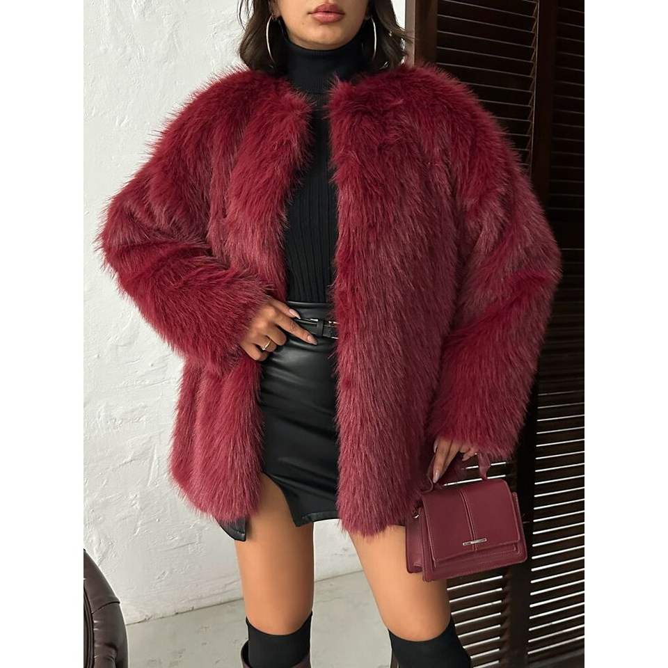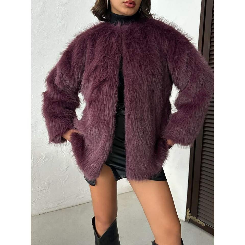 เสื้อแจ็คเก็ตขนเฟอร์เทียมแบบสั้นขายส่ง พร้อมเข็มขัดรัดตัว กระดุมแถวเดียว ลายพิมพ์