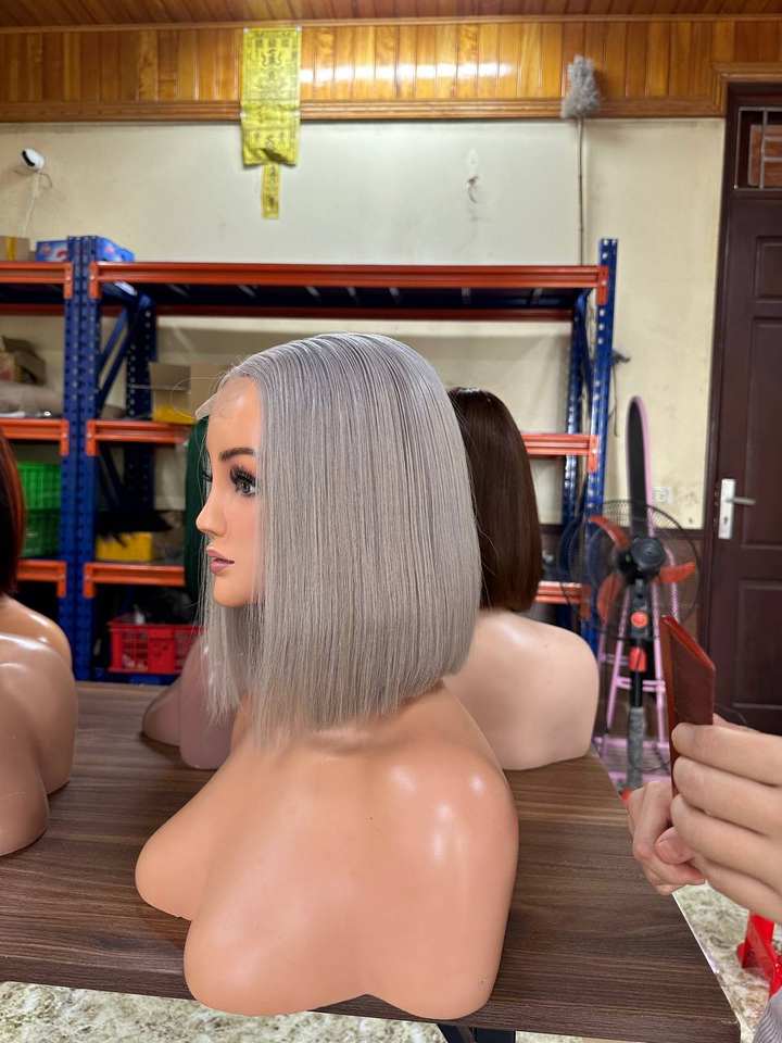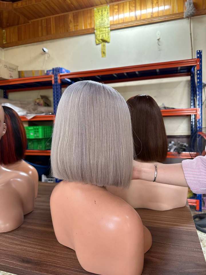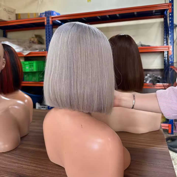 Wholesale Short Straight Bob Wigs for Black Women Blonde With Dark Gray Platinum Middle Part Wig for Hair Dye Human Hair