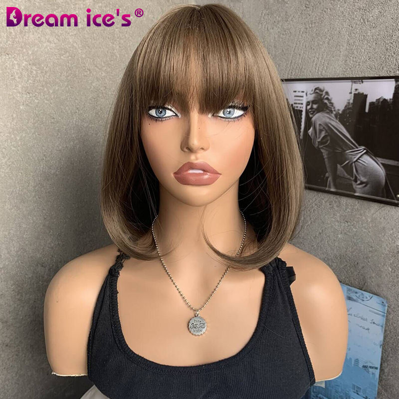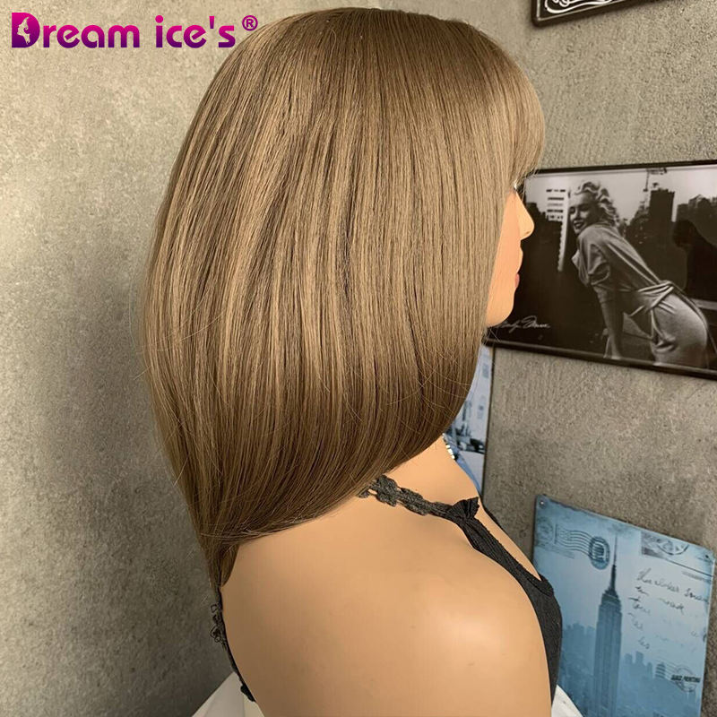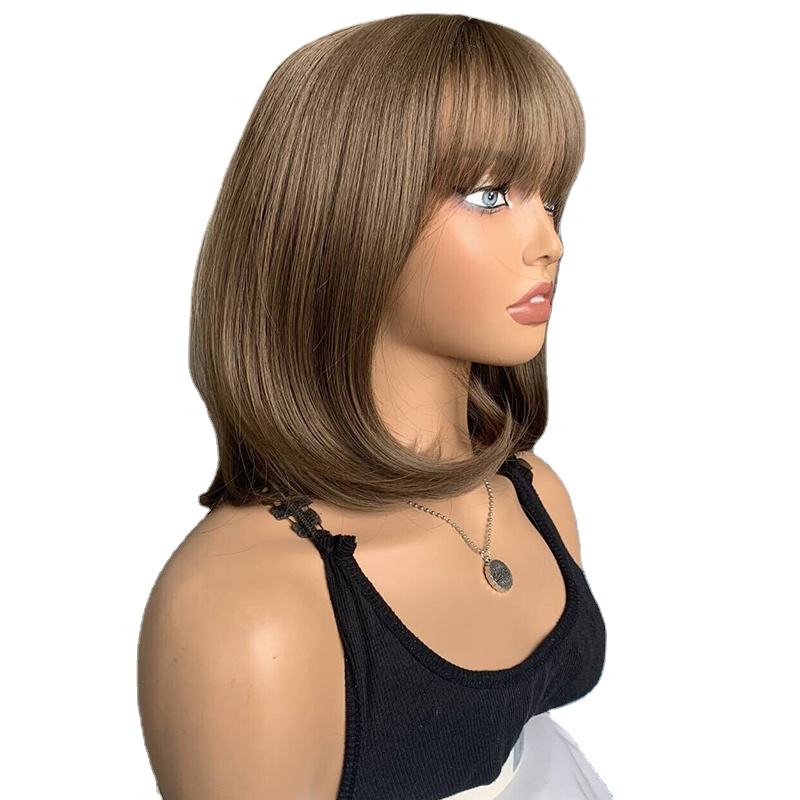 วิกผมสังเคราะห์ผมสั้นสีน้ำตาลเข้มและสีบลอนด์ยาวถึงไหล่ตรงเรียบธรรมชาติสไตล์เป็นชั้น