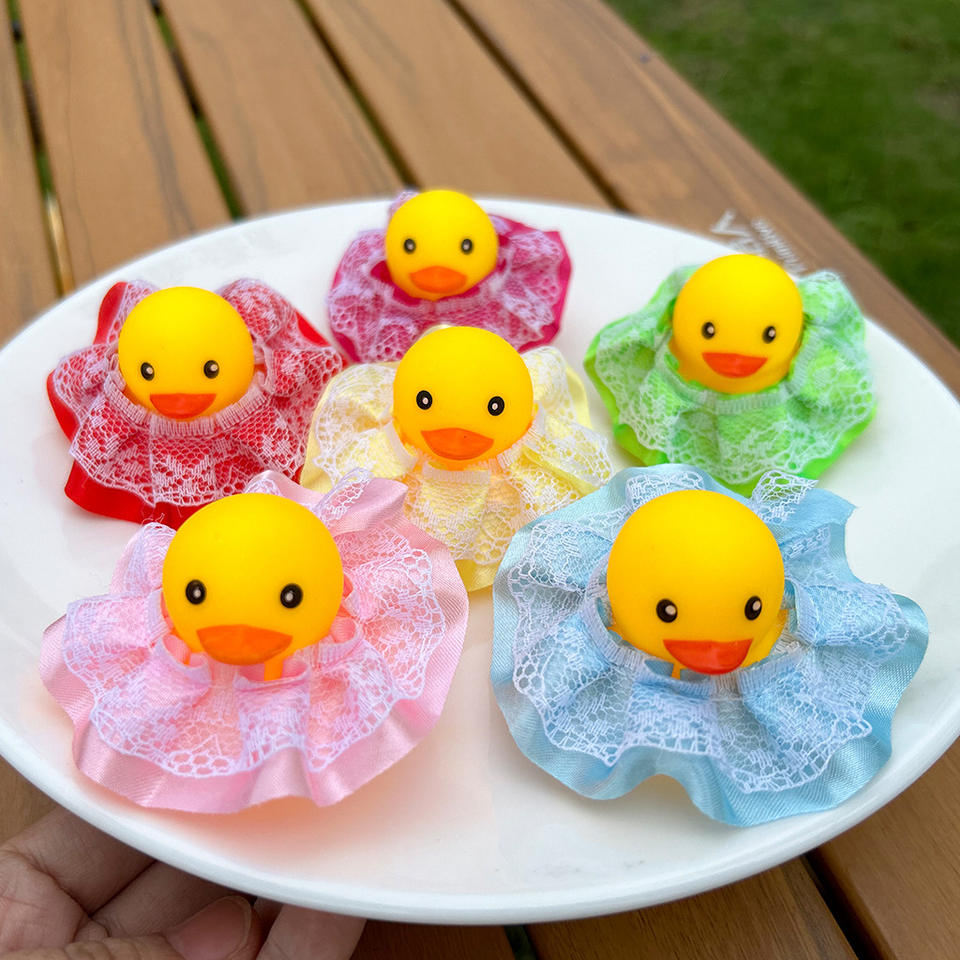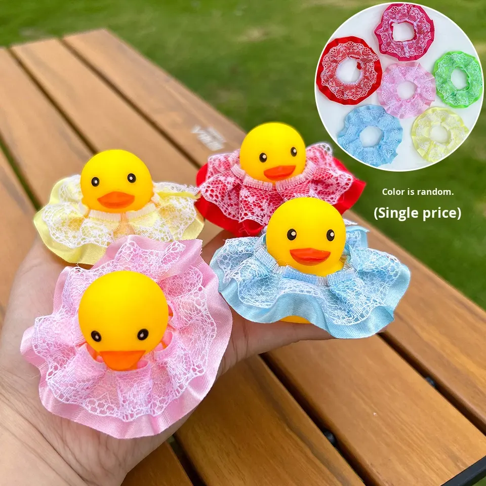 หมวกอาบน้ำหมายเลข8กระโปรงผ้าพันคอเป็ดน้อยแบบทำมืออุปกรณ์เสริมสำหรับของเล่นผ้ากันเปื้อนสำหรับดื่มน้ำชานมเป็ดสีเหลืองขนาดเล็กของขวัญในรถ