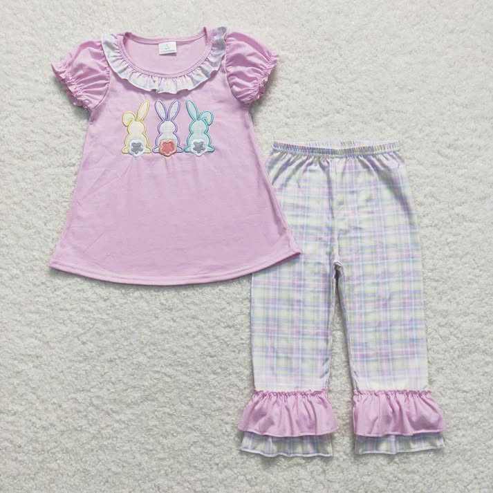 ชุดกระต่ายอีสเตอร์ปักลายเข้าชุดสำหรับพี่น้อง ขายส่ง เสื้อผ้าเด็กแขนสั้นสำหรับเทศกาลอีสเตอร์