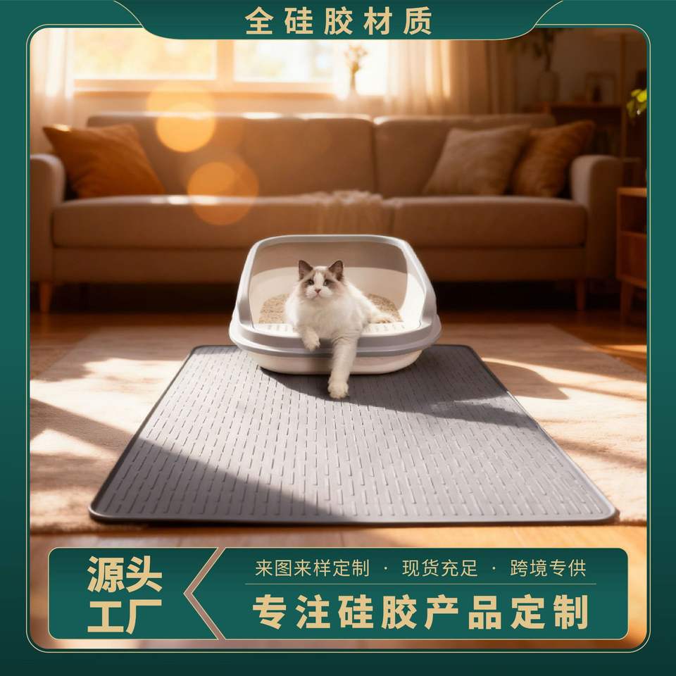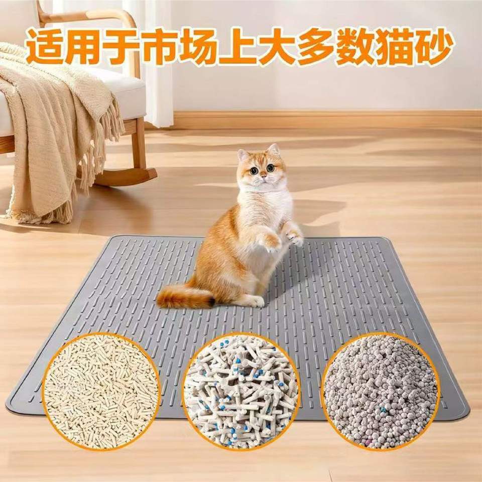 แผ่นรองซับทรายแมวซิลิโคนแบบขายส่ง สีเทา รูปทรงแถบ กันลื่น ซักได้ สำหรับควบคุมการกระจายของทรายแมว ใช้ได้ทุกฤดู