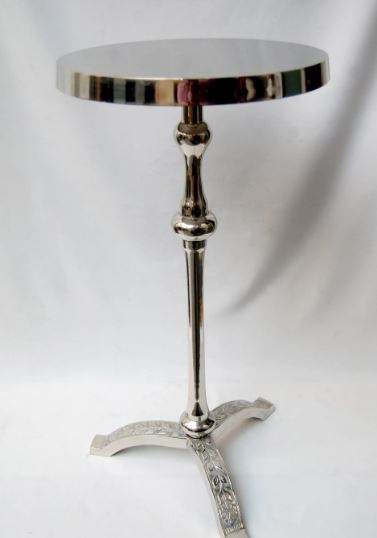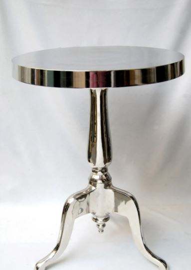 โต๊ะเหล็กสีเงินแบบทันสมัยโต๊ะข้างมีความต้องการสูงตัดลูกไม้สีขาวสำหรับตกแต่งบ้านโต๊ะโลหะขายส่ง