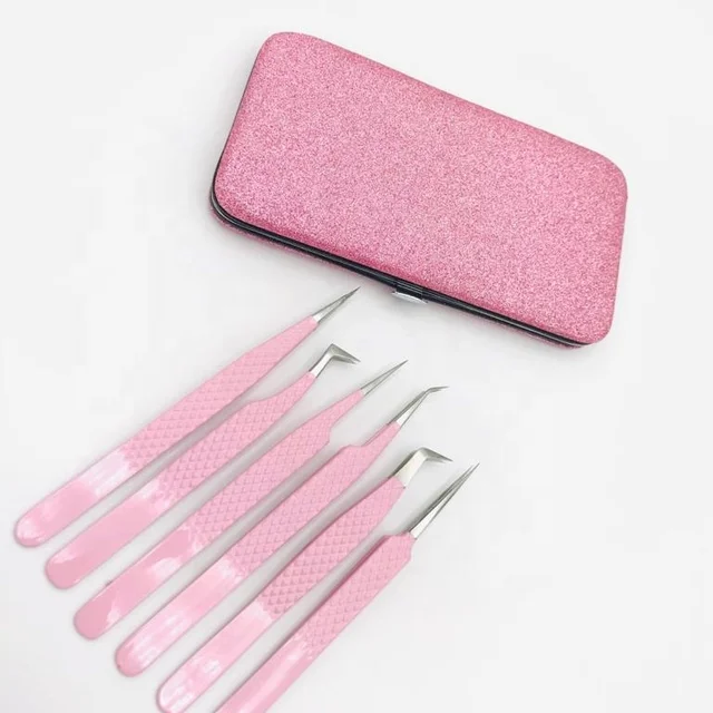 คีมหนีบขนตาสีชมพูแบบมืออาชีพคีมหนีบขนตาสีเงินออกแบบโลโก้ได้ตามต้องการ