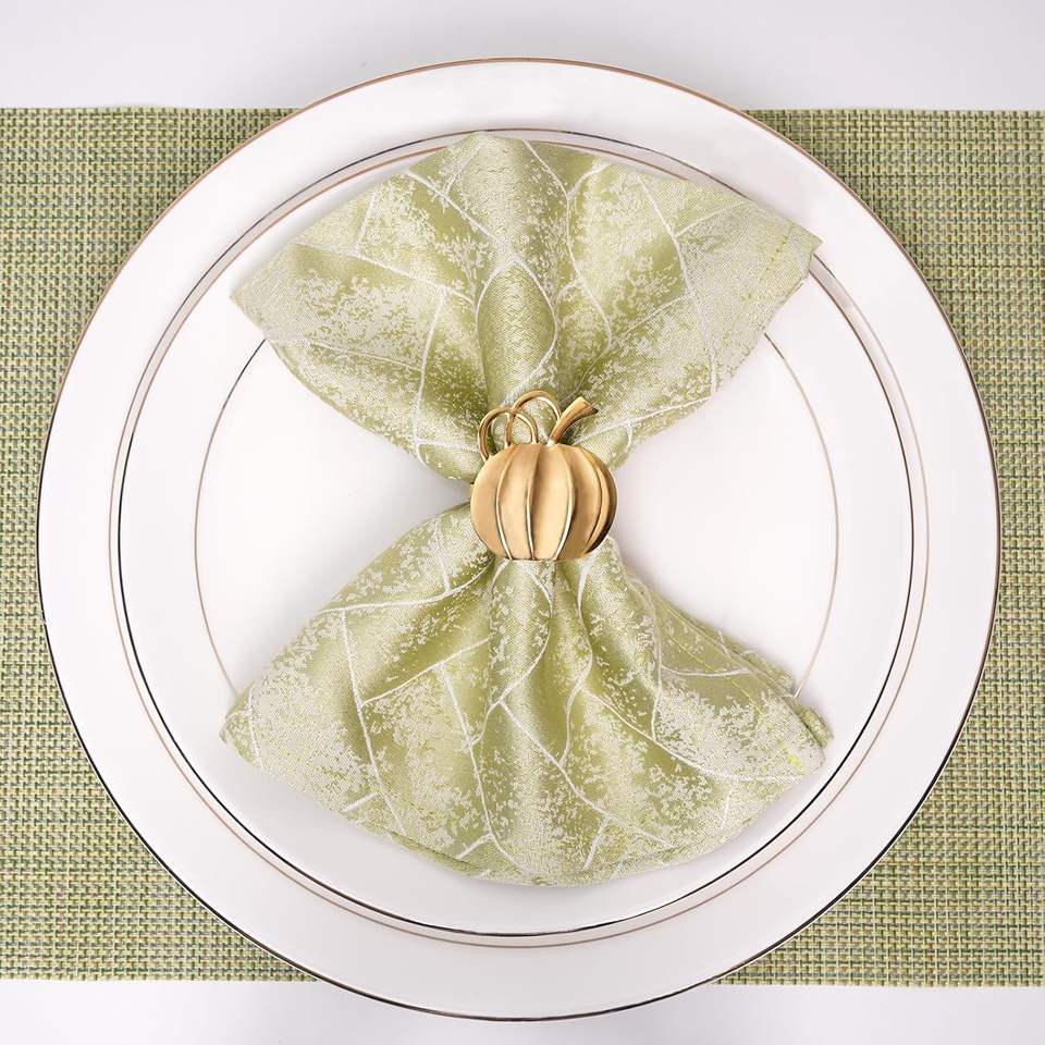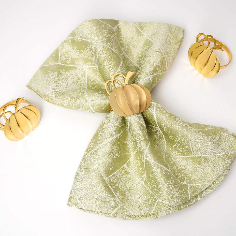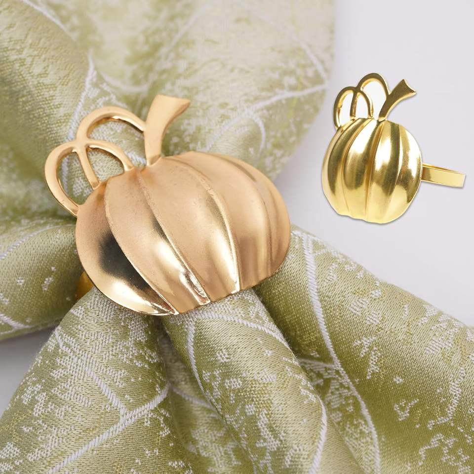 แหวนรัดผ้าเช็ดปากอะลูมิเนียมรูปโบว์สีทองลายฟักทองแบบเรียบง่ายสำหรับขายส่ง พร้อมหัวเข็มขัดโลหะ เป็นมิตรกับสิ่งแวดล้อม ทนทาน เหมาะสำหรับงานแต่งงาน