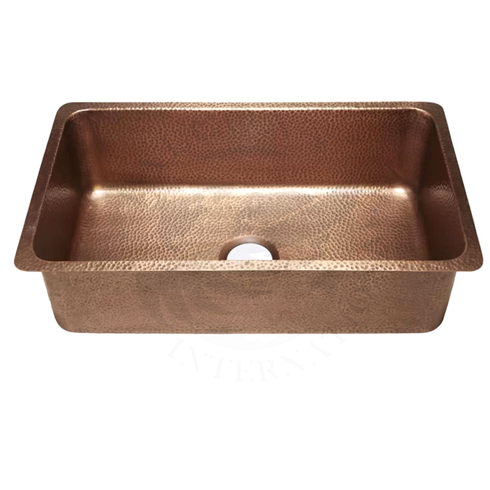 อ่างล้างจานทองแดงแบบเดี่ยวอ่างล้างจานทรงสี่เหลี่ยมผืนผ้าวัสดุทองแดงบริสุทธิ์ปรับขนาดได้