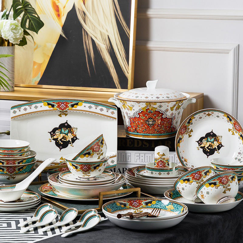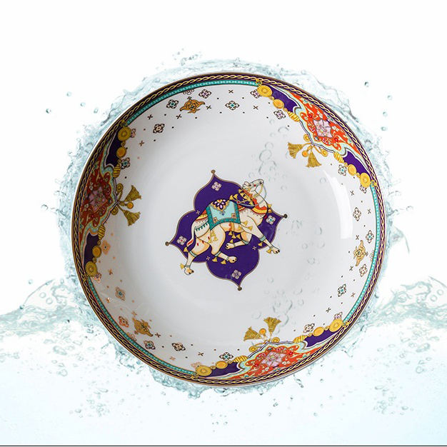 ชามและจานเซรามิกเคลือบด้านล่างเคลือบสีทรงกระดูกสินค้าจีน
