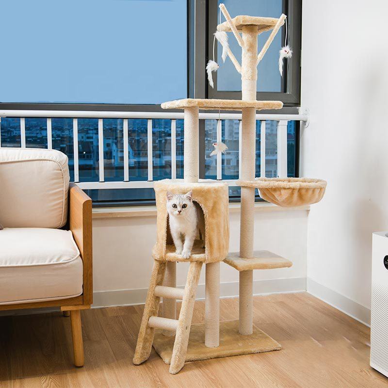 ขายส่งป่านศรนารายณ์ปราสาทขนาดใหญ่ที่ทันสมัยขนาดใหญ่ปีนเขาอุปกรณ์สัตว์เลี้ยงรอยขีดข่วน Scratcher ไม้คอนโดเฟอร์นิเจอร์หอแมวต้นไม้